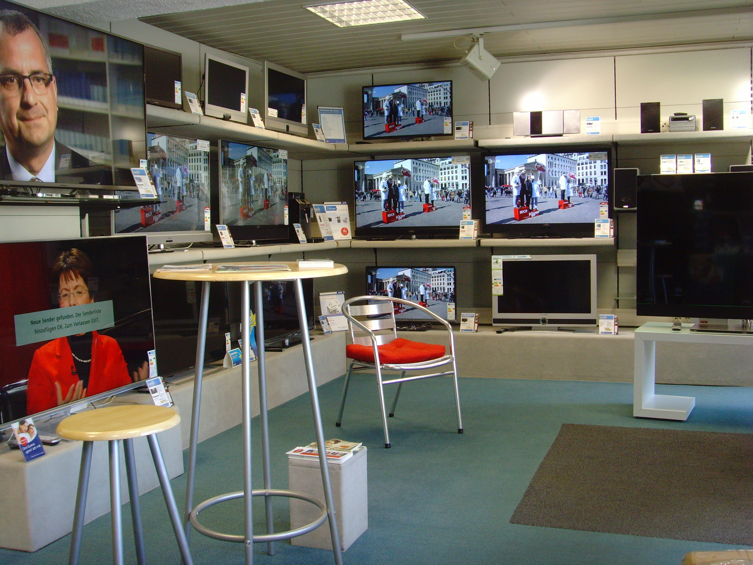 In unserem Fachgeschäft präsentieren wir Ihnen auf 60 qm ausgewählte Geräte der Marken Metz, Panasonic, TechniSat, Audio Block und vielen mehr. Hier werden Sie von uns fachkundig beraten, können Geräte anfassen oder ausprobieren und bekommen neben Original-Zubehör und -Ersatzteilen auch wertvolle Tipps zu Pflege, Bedienung und Energieeffizienz. Über unseren elektronischen Katalog haben wir überdies Zugriff auf mehr als 10.000 Geräte, sodass wir Ihnen Ihr Wunschprodukt innerhalb von 24 Stunden liefern können.